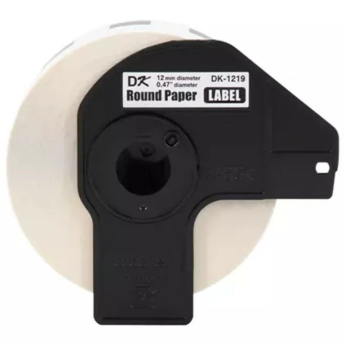 The Original Brother DK-1219 Black on White Round Paper Adhesive Label provides reliable high-quality laser prints with labels that yield up to 1,200 labels per roll.