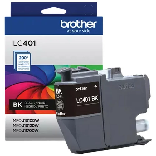 The Original Brother LC-401BKS Black Ink Cartridge provides high-quality laser prints that yield up to 200 prints.
