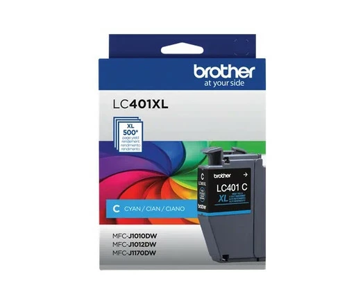 The Original Brother LC-401XLCS Cyan High-Yield Ink Cartridge provides high-quality laser prints that yield up to 500 pages.