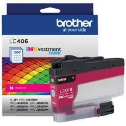 The Original Brother LC-406MS Magenta Inkvestment Tank Ink Cartridge provides high-quality laser prints that yield up to 1,500 pages per cartridge.