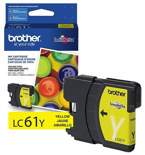 The Brother LC-61Y Yellow Ink Cartridge is designed to work with DCP-165 C, DCP-375 CW, DCP-385 C, DCP-395 CN, DCP-585 CW, DCP-6690 CW, DCP-J140 W, DCP-J715 W, MFC-250 C, MFC-255 CW, MFC-290 C, MFC-295 CN, MFC-490 CW, MFC-495 CW, MFC-5490 CN, MFC-5890 CN, MFC-5895 CW, MFC-6490 CW, MFC-6890 CDW, MFC-6890 DW, MFC-790 CW, MFC-795 CW, MFC-990 CW, MFC-J220, MFC-J265 W, MFC-J270 W, MFC-J410 W, MFC-J415 W, MFC-J615 W, MFC-J630 W, printer models.